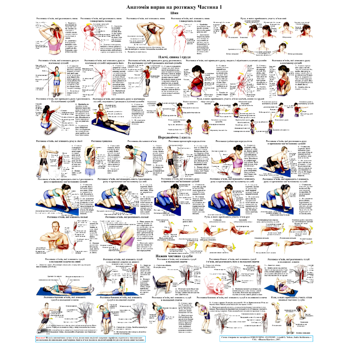 Анатомічний комплект плакатів для стретчінга м“язів 67*86см. Плакат анатомії та розтягування м“язів