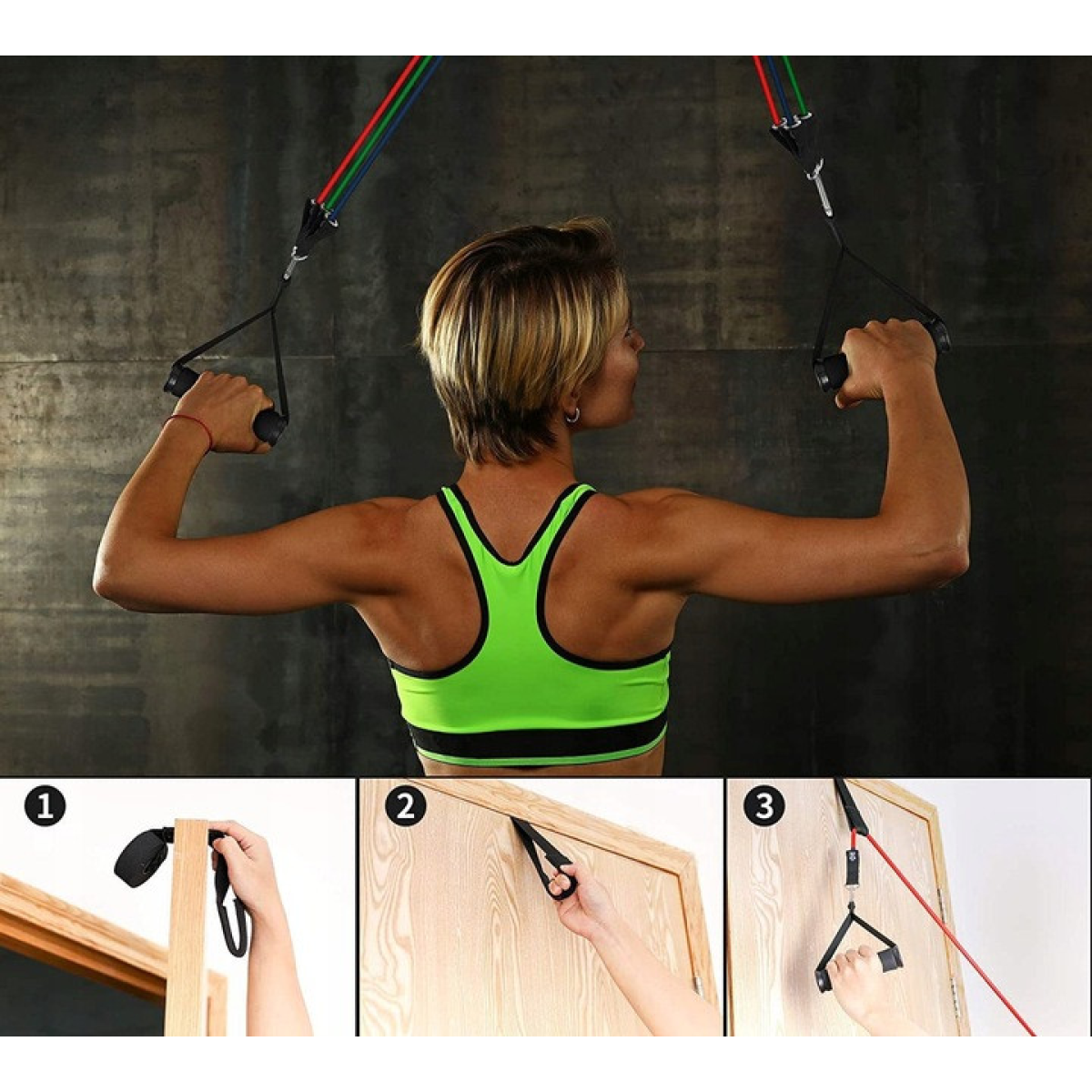 Преміум-комплект ремінців із стійкістю включає дверний кріплення та два ремені для щиколоток . Ви можете виконувати тренування всього тіла, зміцнювати хребет і активувати певні групи м’язів . Ідеально підходить для підтяжки: стегон, литок, сідниць, преса, біцепсів, трицепсів, ніг і колін. Це обов'язково доповнить інші вправи.
