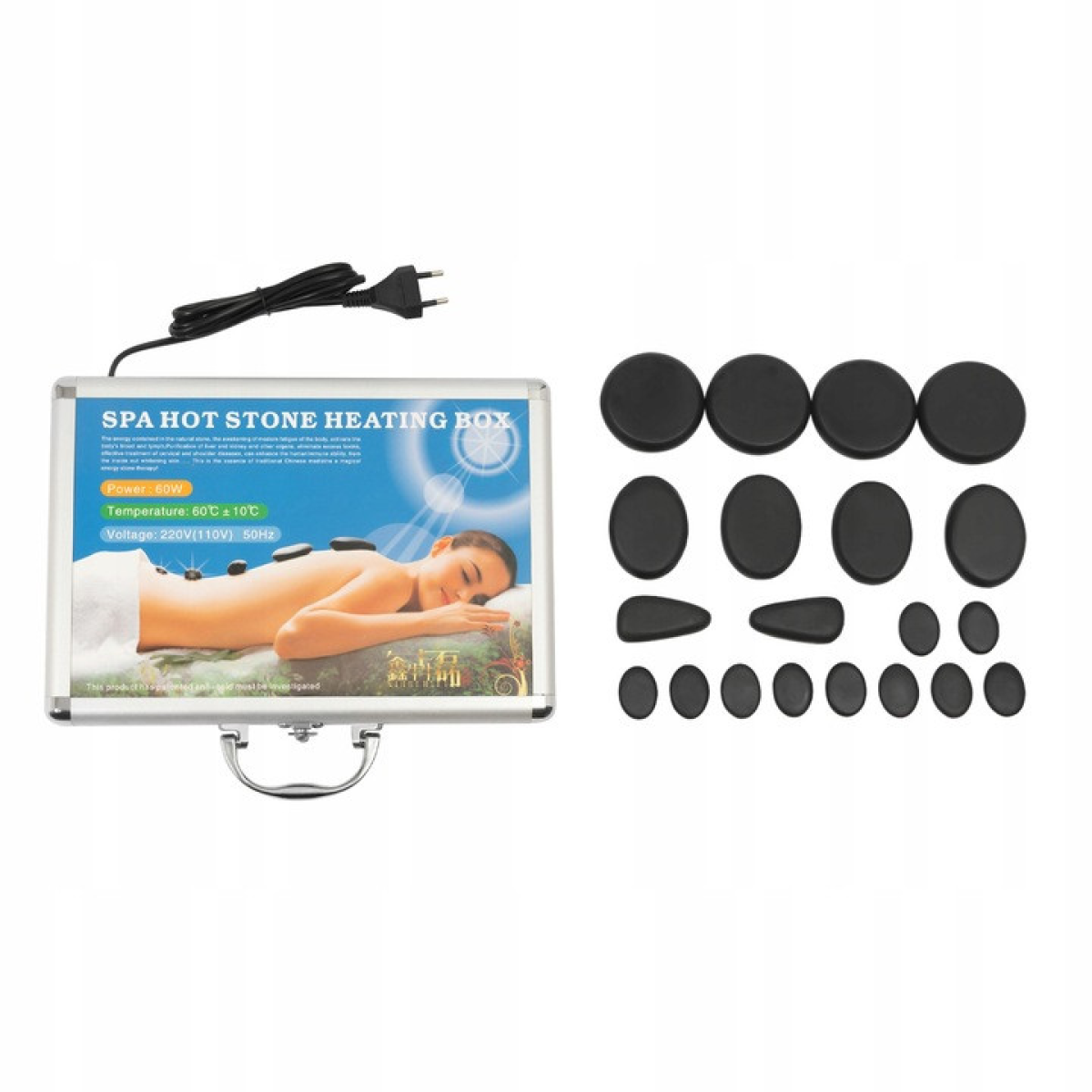 - Безпроблемне використання: увімкнувши нагрівальний ящик, його можна нагріти. Перед використанням ви також можете прокип'ятити вулканічні породи у воді або розігріти їх у мікрохвильовій печі на середній потужності протягом 1 хвилини. Ви також можете поставити їх у холодильник для холодного масажу. Навіть новачки можуть легко почати користуватися пристроєм.