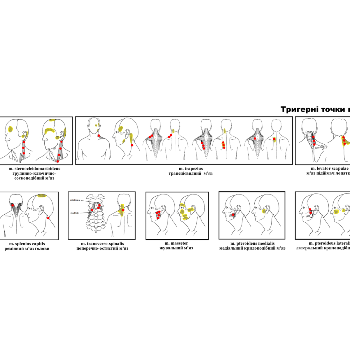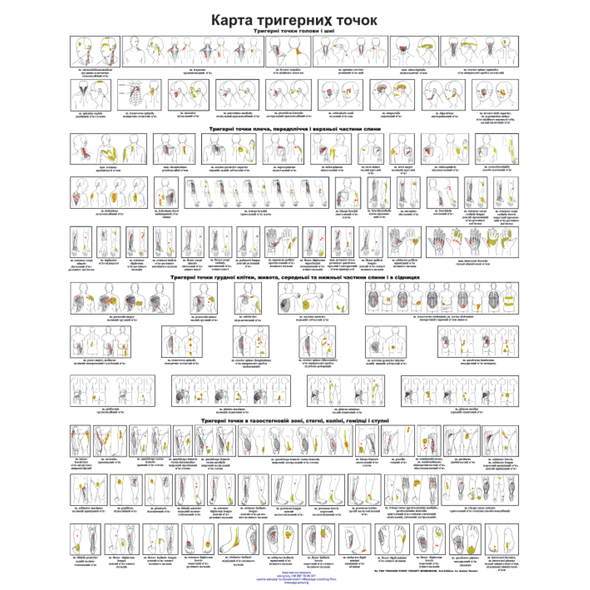 Плакат Карта Тригерних точок 86×67см Плакат з тригерними точками голови та шиї Плакат для масажного кабінету