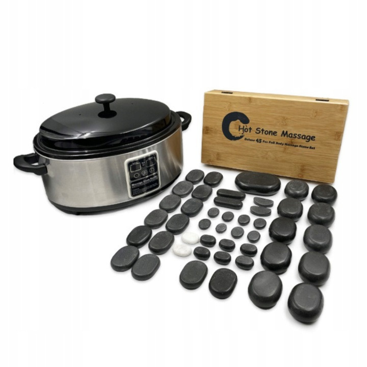 Набір базальтових масажних каменів 45 шт Нагрівач 6л Набір для стоунмасажу Базальтові масажні камені