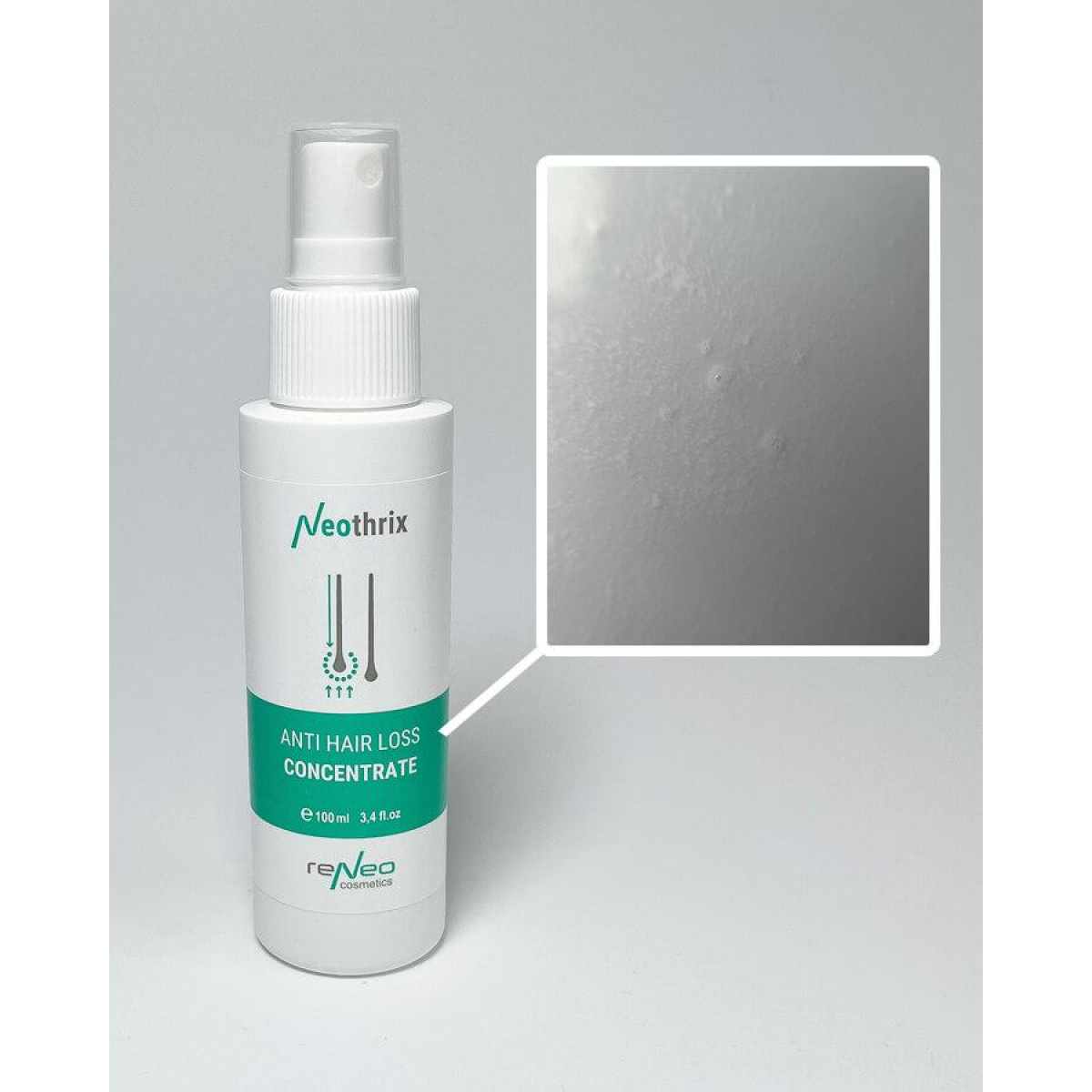 Концентрат має рідку консистенцію, швидко поглинається шкірою, дає відчуття свіжості та прохолоди, абсолютно немає відчуття жирності на коренях волосся.