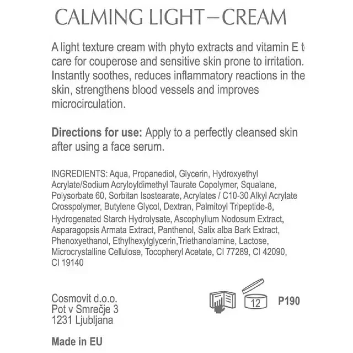 Заспокійливий легкий крем для обличчя Derma Series Calming Ligt Cream 100 ml Крем для чутливої шкіри