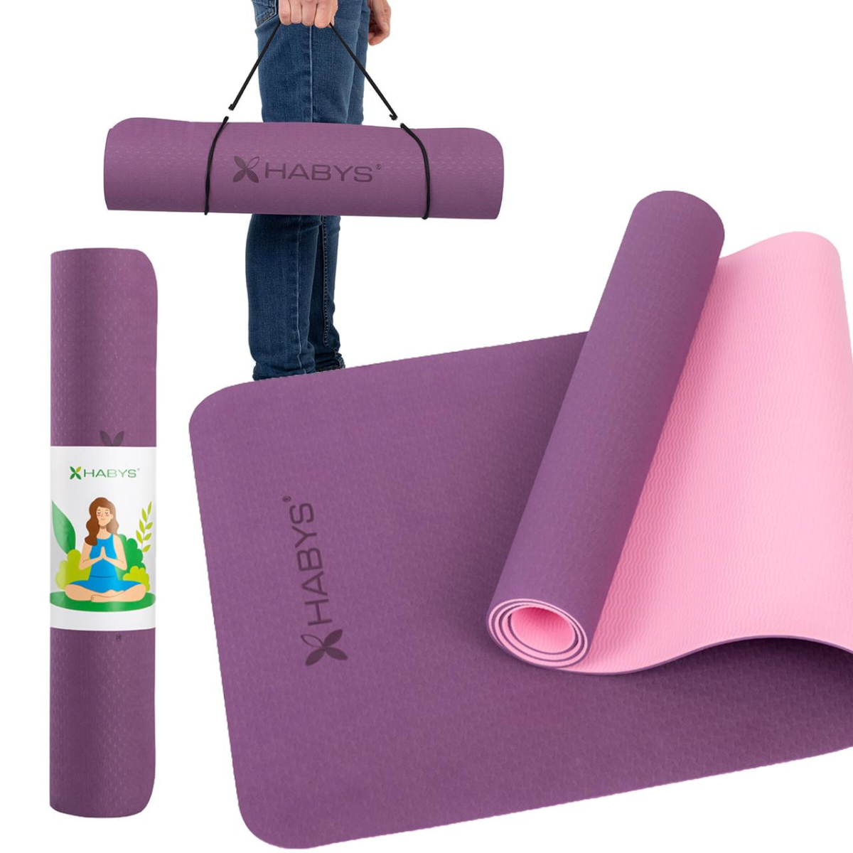 Двошаровий килимок для тренувань ТРЕ можна використовувати для багатьох фізичних навантажень: йоги, пілатесу, аеробіки та гімнастики. Він гіпоалергенний і виготовлений з високоякісного екологічно чистого матеріалу TPE, щільність якого перевищує традиційні килимки. Він забезпечує виняткове зчеплення з землею та ідеально поглинає будь-який рух під час тренування. Оснащений зручною ручкою для перенесення.