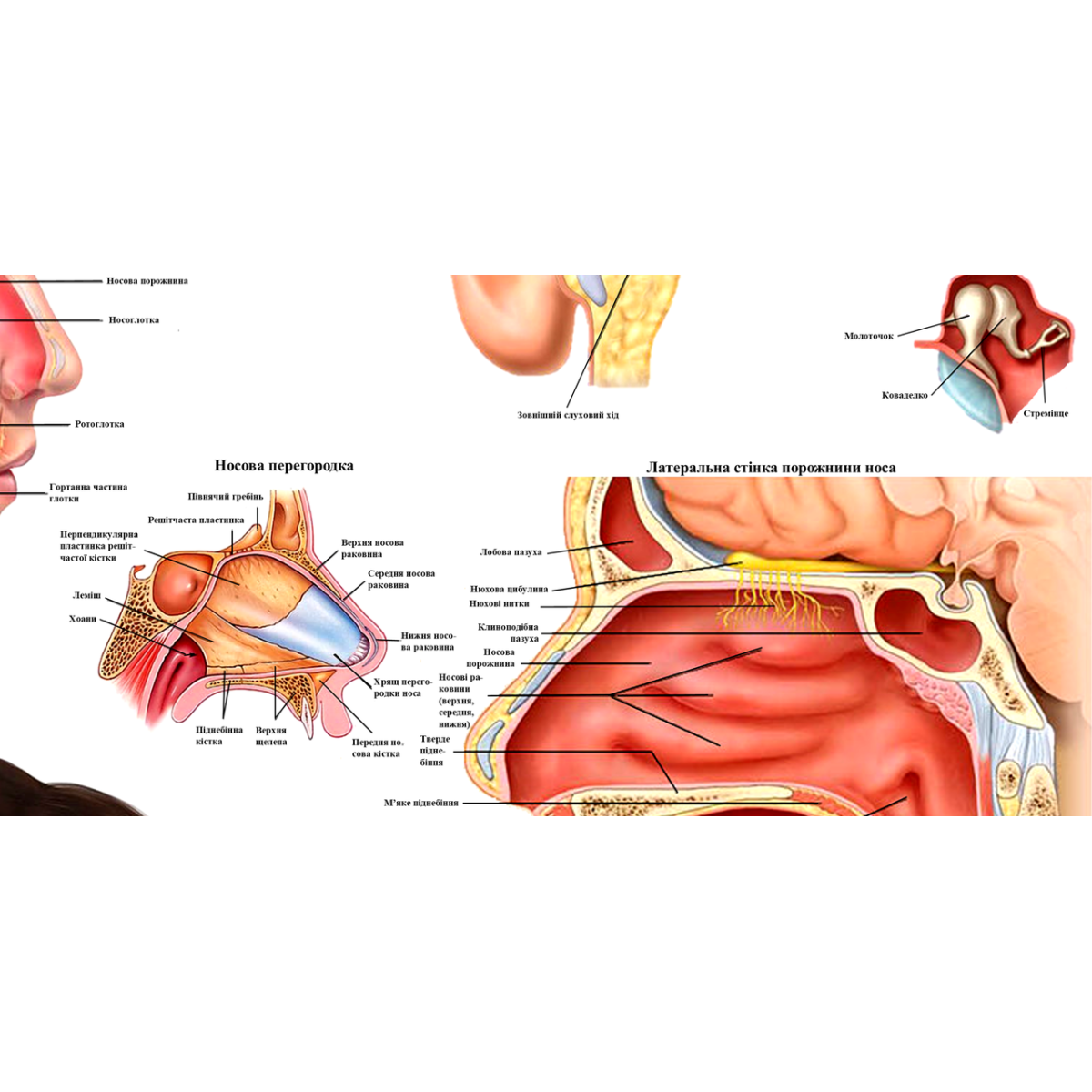 Плакат Анатомічна будова вуха горла та носа 67*86 см Медичний плакат Анатомічний плакат