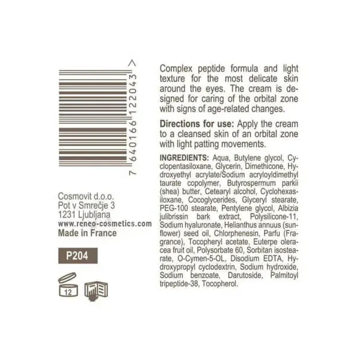 - Комплексний вплив: Крем забезпечує зволоження, живлення, розгладження зморщок, усунення набряклості й темних кіл.