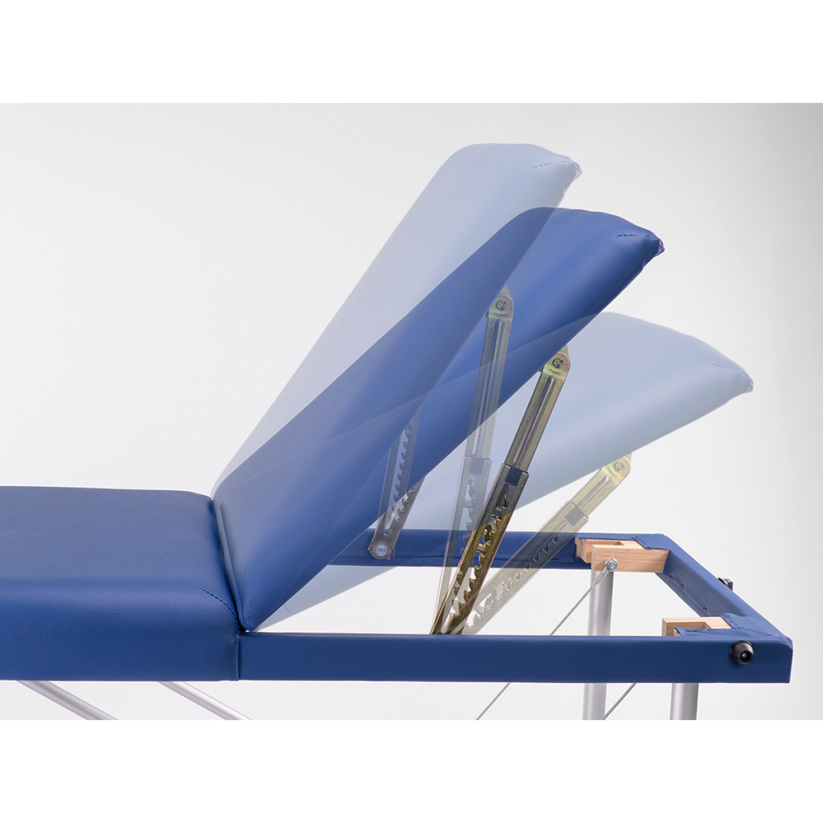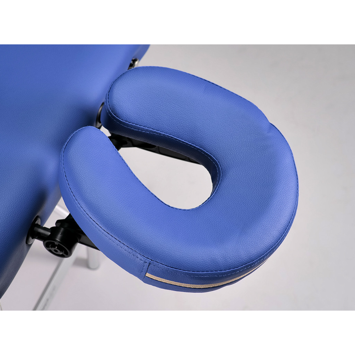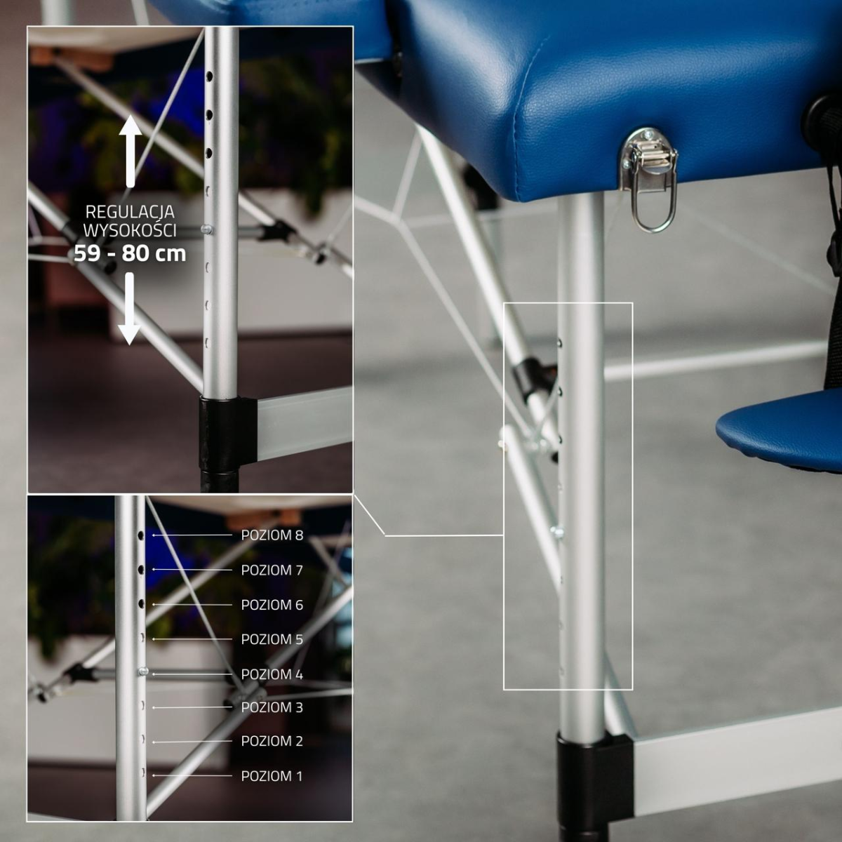 Стіл має легку алюмінієву конструкцію з поперечиною, що підвищує стійкість під час роботи. Завдяки цьому він ідеально підходить як для стаціонарного використання в масажних і фізіотерапевтичних кабінетах, так і для польових робіт.