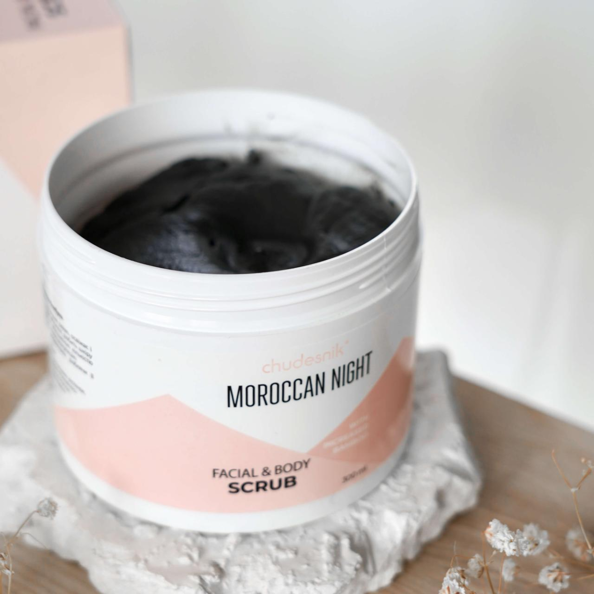 Настав час втілити цю фантазію в реальність, адже в компанії розкішного скрабу для тіла та обличчя «Марокканська ніч» від бренда Chudesnik – це так просто! Facial Scrub Maroccan Night відрізняється привабливим квітковим ароматом, позитивним впливом на стан шкіри, гіпоалергенним складом. Високий вміст олій та екстрактів забезпечує інтенсивне зволоження та живлення , відновлює та пом'якшує пошкоджені ділянки, тонізує та освіжає.