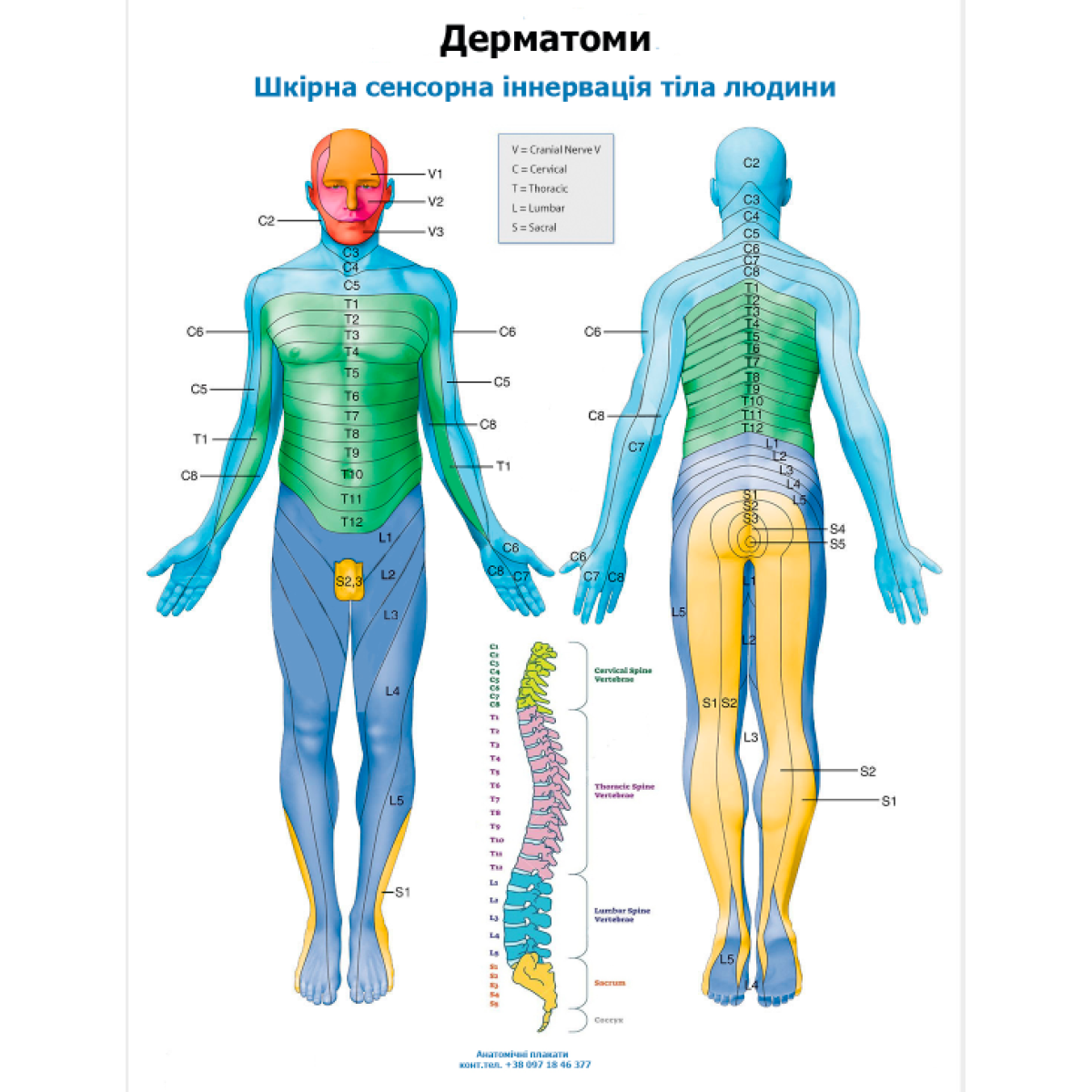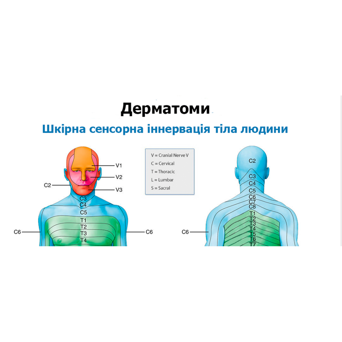 - зручний демонстраційний матеріал для пацієнтів (місце знаходження зон іннервації шкіри та діагностика ураження сигментів спинного мозку);