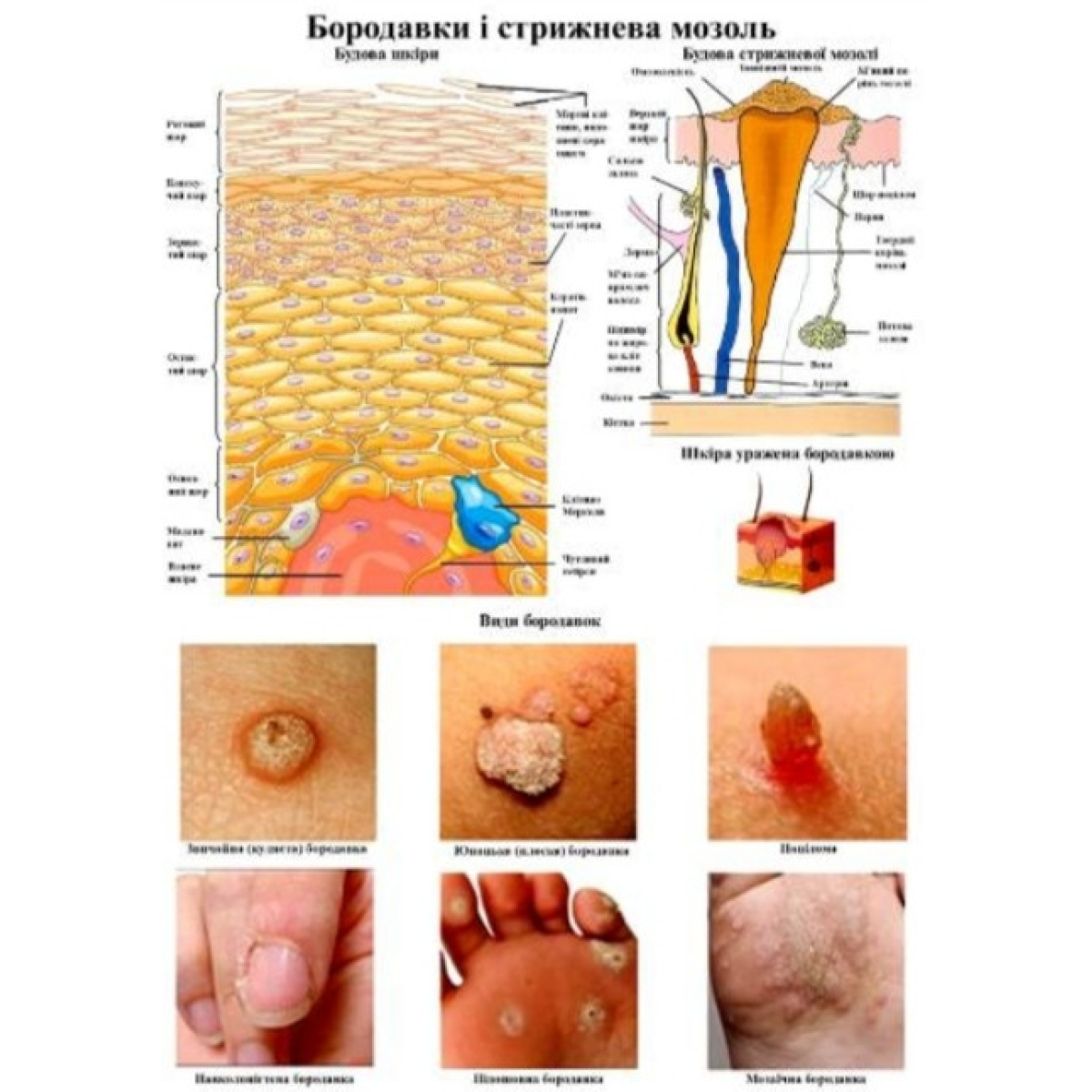 Плакат Бородавки та стрижнева мозоль 50*64.5 см Демонстраційний плакат для кабінету подолога