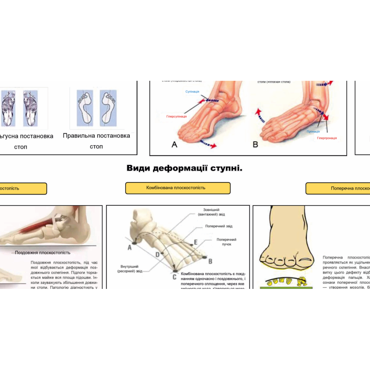 - зручний демонстраційний матеріал для пацієнтів (місцезнаходження кісток стопи та проблем у них);