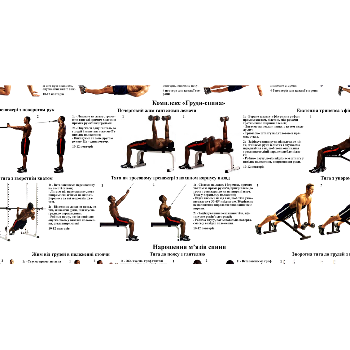 Плакат Силові вправи для спини 67*86 см Плакат із вправами для спини Демонстраційний плакат