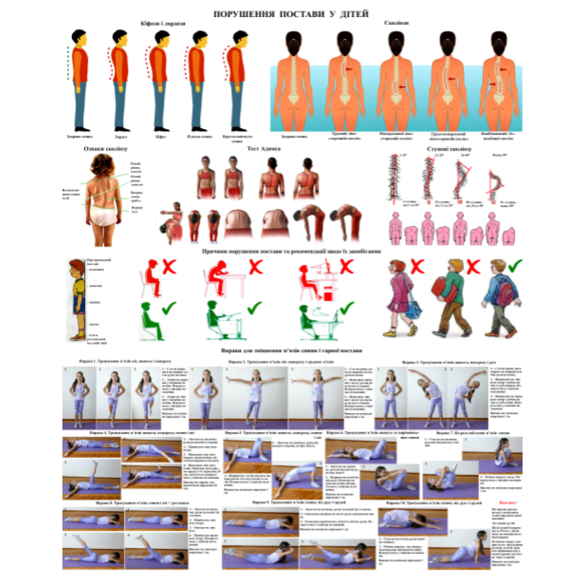 Плакат Порушення постави людини 86×67см Навчальний плакат Демонстраційний плакат порушення постави дітей