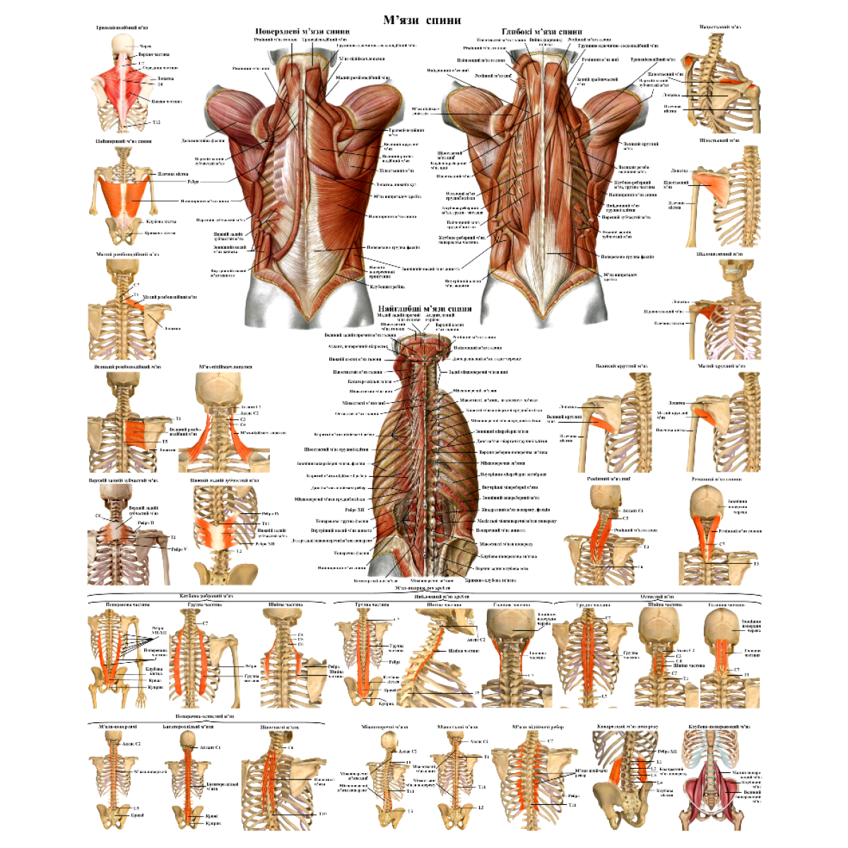 Анатомічний плакат М“язи спини 50*64.5см Анатомічний навчальний плакат М“язи спини людини