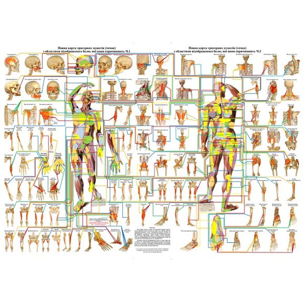 Плакат «Повна карта тригерних пунктів (точок) з областями відображеного болю, які вони викликають» розміром 119*86 см.