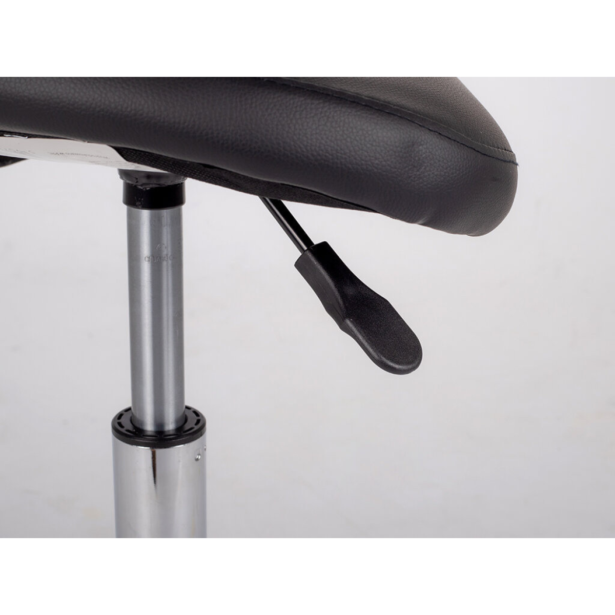 Ергономічний поворотний стілець з профільованим сидінням у формі сідла, зручним регулюванням висоти за допомогою газової пружини та коліщаток. Табурет-сідло підтримує оптимальний розподіл ваги тіла та полегшує прийняття природного положення сидіння. П'ятиспицеве, блискуче хромоване підстава додасть елегантності будь-якому інтер'єру. Призначений для масажних кабінетів, фізіотерапевтичних, косметичних та перукарень.
