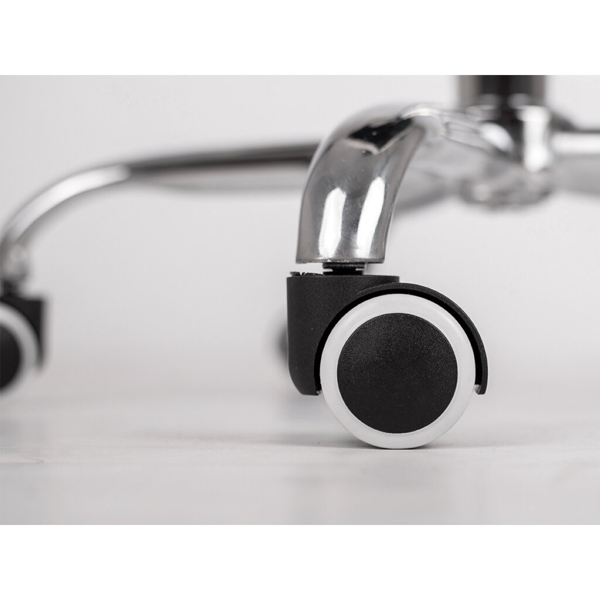 Lofi - це сучасний, ергономічний поворотний табурет, також відомий як табурет-сідло. Правильно спрофільоване сидіння підтримує оптимальний розподіл ваги тіла та полегшує прийняття природного положення. Рама з п’ятьма спицями та колесами з поліуретановим покриттям забезпечують плавний рух. Механізм регулювання висоти за допомогою газової пружини дозволяє швидко регулювати висоту під потреби користувача. Призначений для масажних кабінетів, фізіотерапевтичних, косметичних та перукарень.