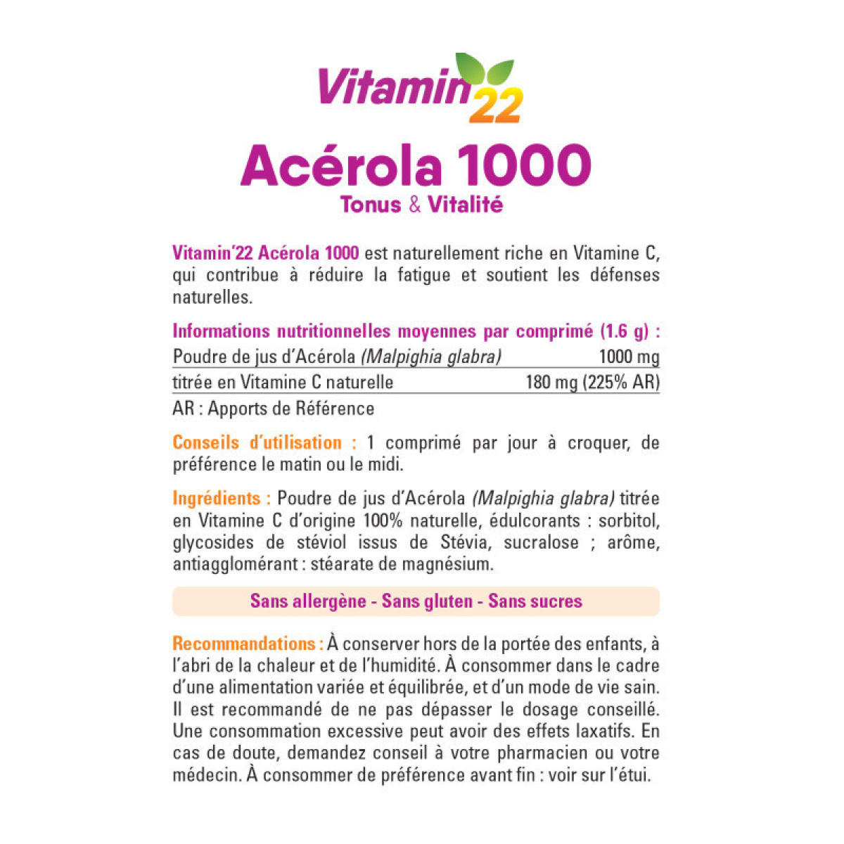 Вітаміни жувальні для дорослих Vitamin“22 Acerola 1000 vitamine C naturelle 24 шт Дорослі вітаміни
