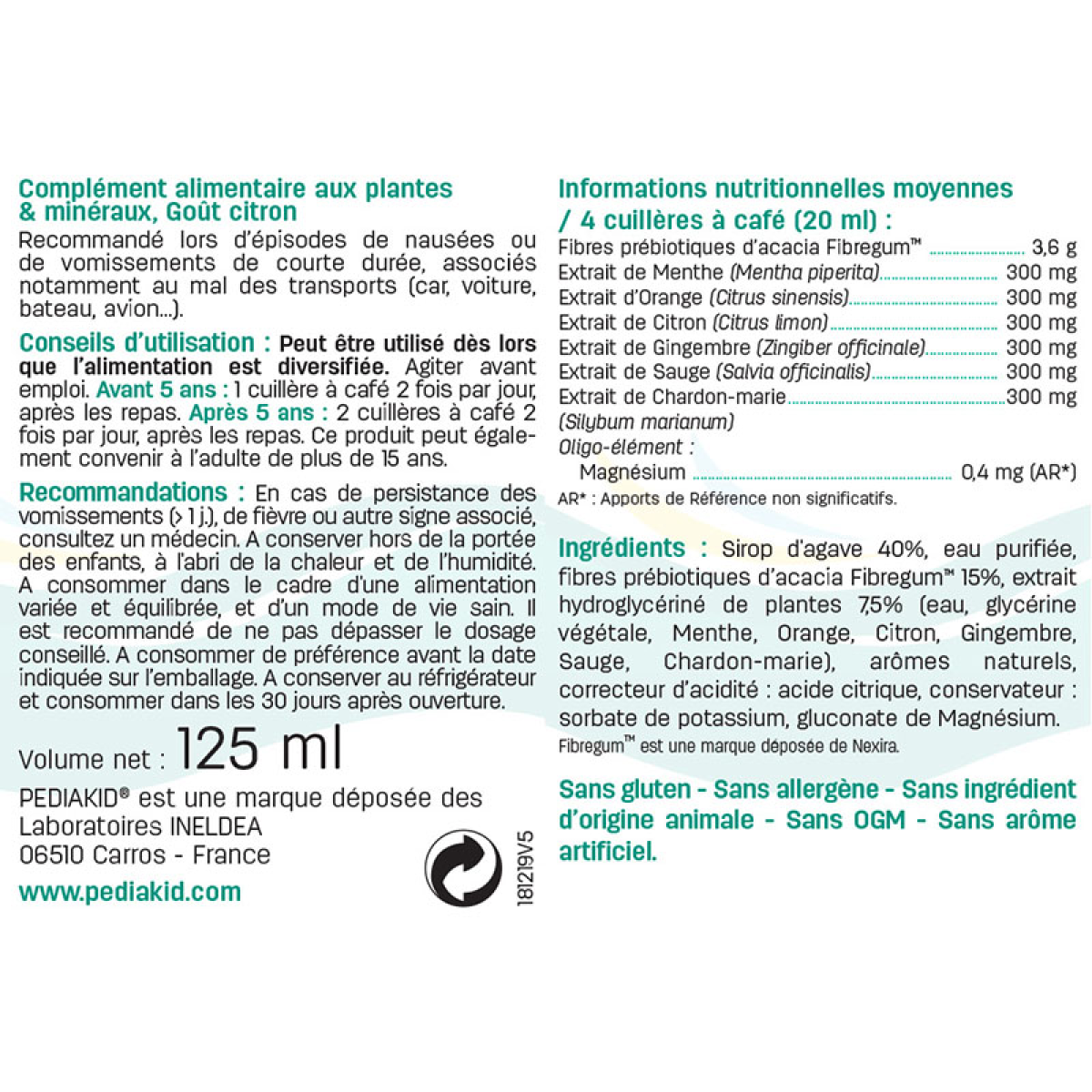 Сироп від захитування в транспорті Pediakid Nausees-Vomissements mal des transports від 6 міс. 125 мл