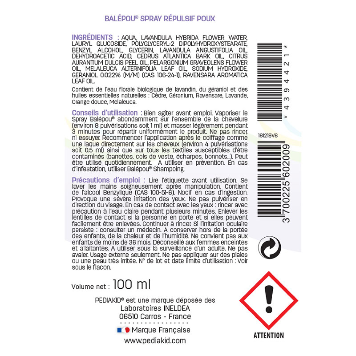Спрей проти вошей і гнид Pediakid Balepou Spray від 3 років 100 мл Дитячий спрей проти вошей і гнид