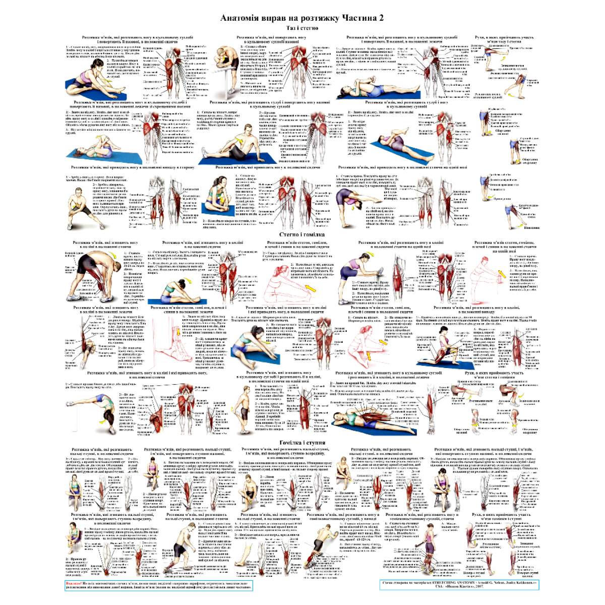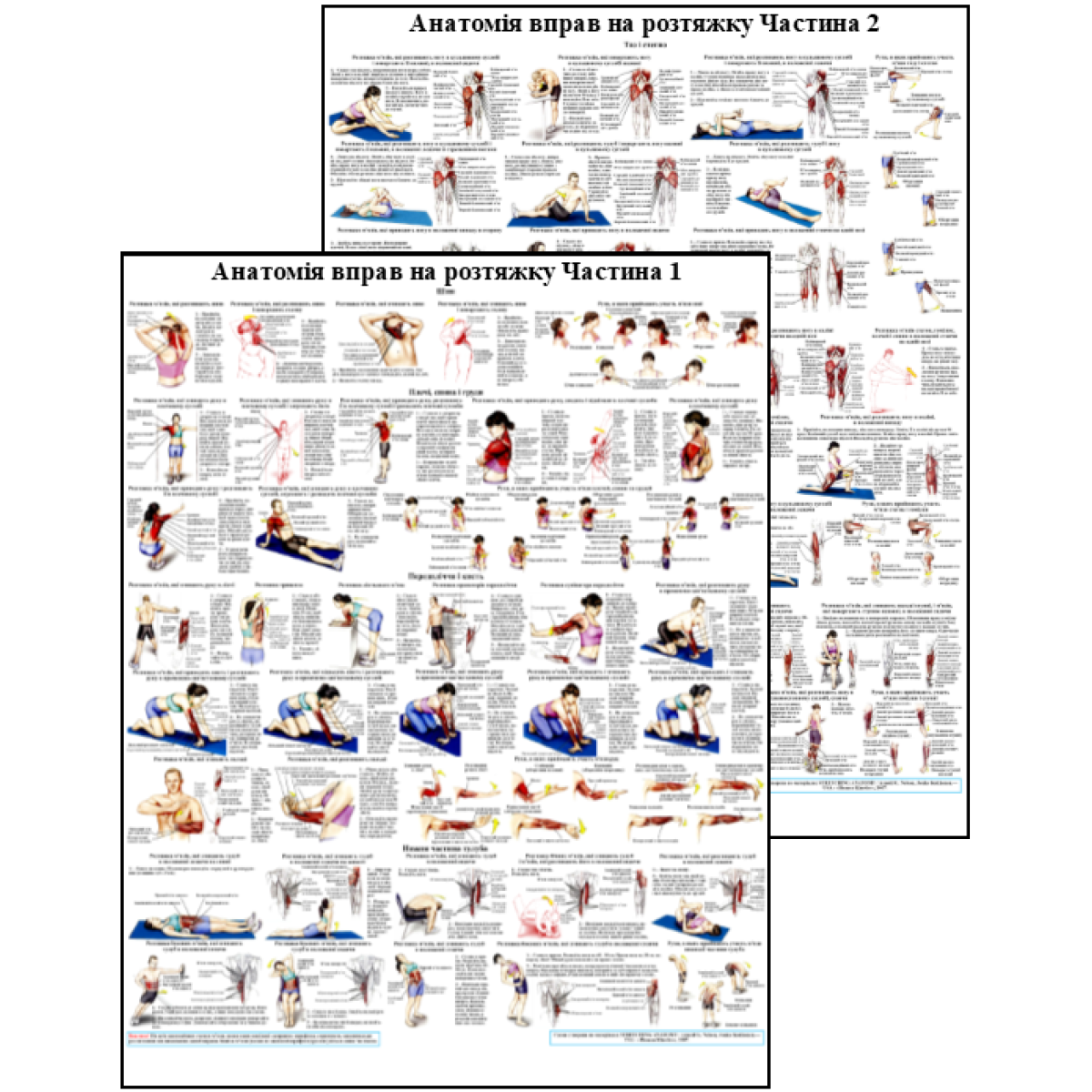 Анатомічний комплект плакатів для стретчінга м“язів 50*64.5см. Плакат анатомії та розтягування м“язів