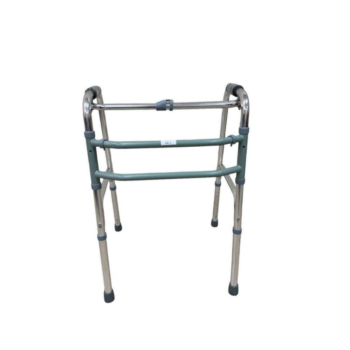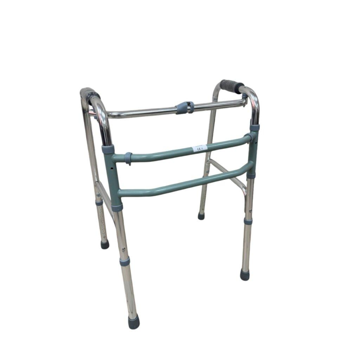 Складна конструкція: Ходунки складаються за допомогою центральної кнопки для зручності зберігання та транспортування.