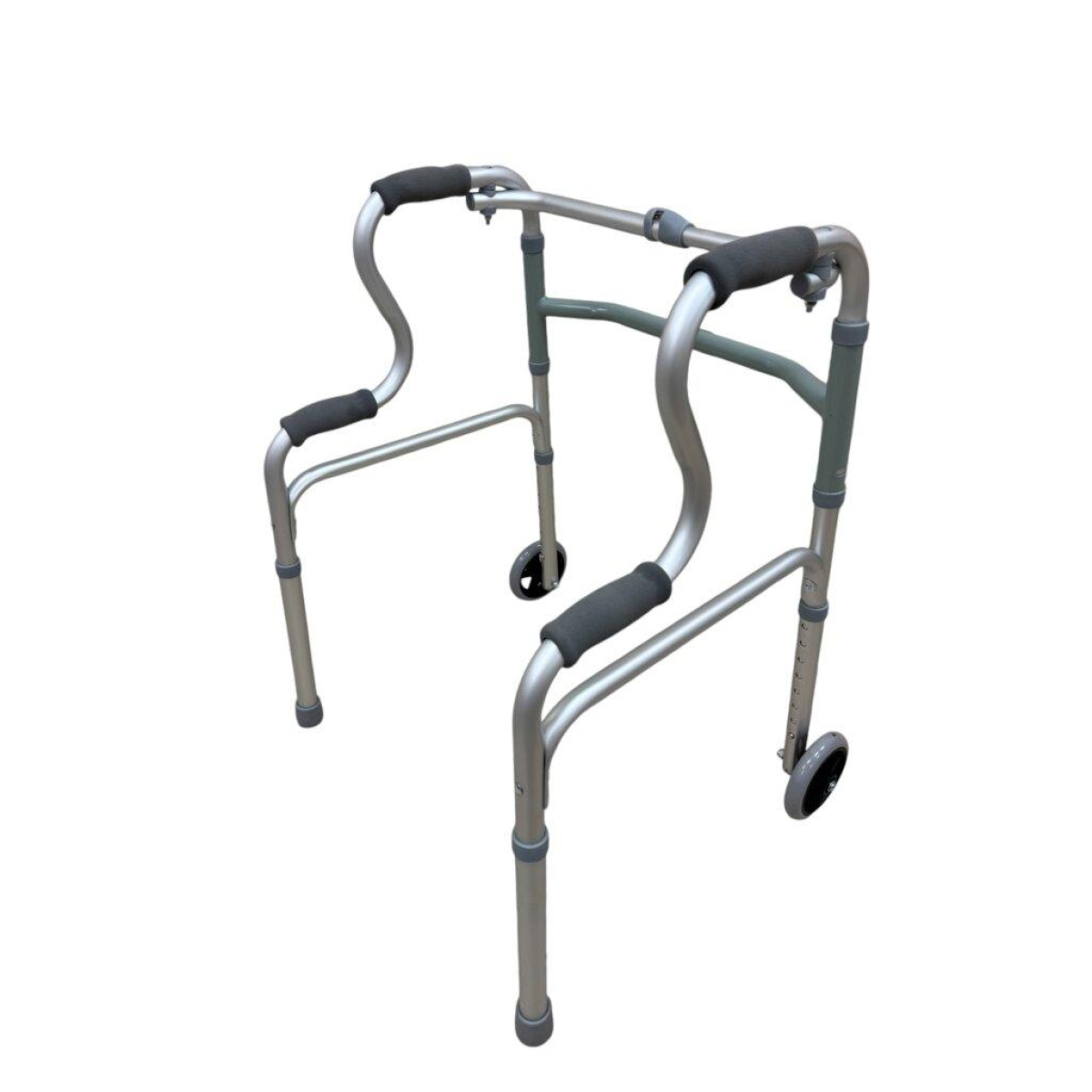 Складна конструкція: Ходунки складаються за допомогою центральної кнопки для зручності зберігання та транспортування. Автоматично фіксуються при розкладанні.